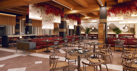 1 restaurant principal "World Café" (buffet international) et 6 restaurants à la carte (le soir, sur réservation : asiatique, méditerranéen, traditionnel, français), grill, snack à la piscine (midi et soir). 5 bars (dont un réservé aux adultes, un disco, bar des sports, un réservé aux Preferred Club), Coco Café (24h) et glacier. Tenue correcte exigée.