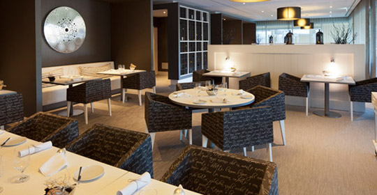 4 restaurants : Al Quimia (réservé aux adultes uniquement) qui propose une cuisine gastronomique en soirée. L'Abyad, restaurant principal à l'ambiance familiale sous forme de buffet pour les petits déjeuners et les dîners (en haute saison). L'Open deck, un restaurant saisonnier proposant des snacks. Le Lima réservé aux familles (ouvert en été). 2 bars : le Bluum bar qui utilise la gastronomie moléculaire et l'Epic Bar ouvert en basse saison.