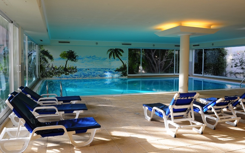 3 piscines extérieures dont 1 avec bassin pour enfants à l'hôtel Estrelicia, chaises longues et parasols. Espace spa avec sauna, bain à remous et piscine intérieure chauffée. Salle de sports. Aire de jeux pour les enfants. Fléchettes.