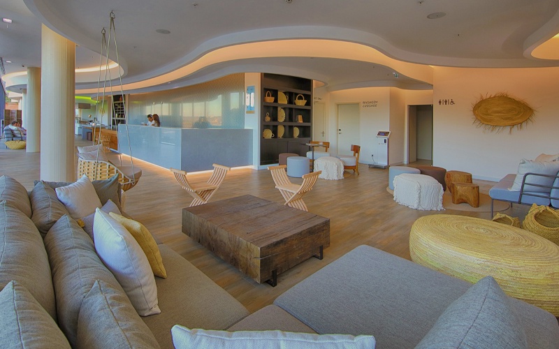 1 piscine extérieure sur le toit entourée de sable et aménagée avec chaises longues et lits balinais. Salle de sport.