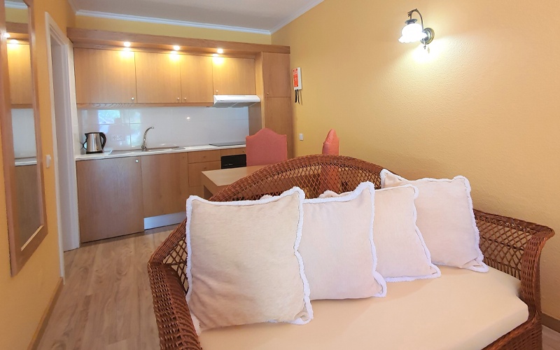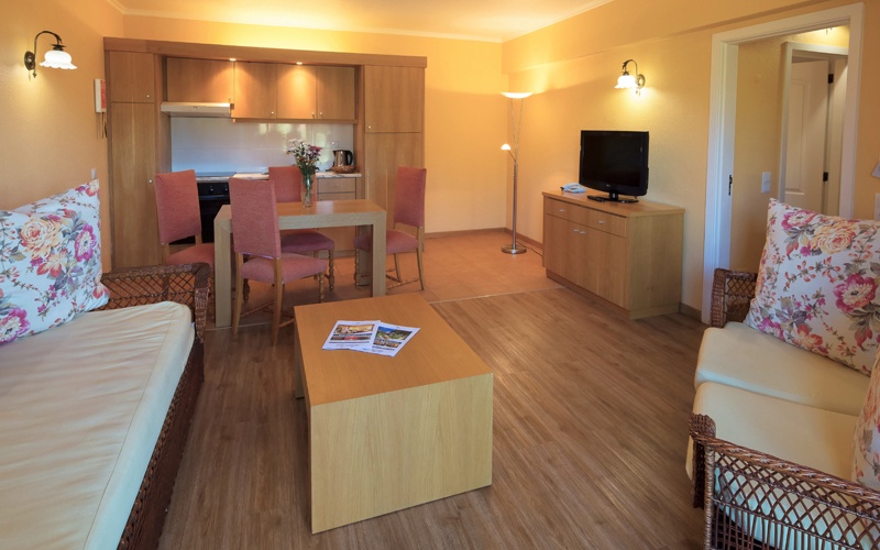 141 studios et appartements avec kitchenette et 25 spa suite de luxe, téléphone, télévision satellite, connexion wifi gratuite, coffre-fort (payant), salle de bains avec baignoire ou douche et sèche- cheveux, balcon ou jardinet. Chambre séparée dans les appartements. Spa suites plus spacieuses avec vue directe sur la mer, accès au spa, coffre-fort gratuit et mini bar.