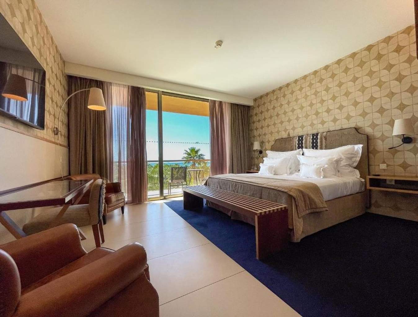 La chambre Prestige vous accueille dans un cadre chaleureux et convivial, où le décor contemporain se marie à la douceur de vivre de l'Algarve. Chaque espace est pensé pour offrir confort et détente, avec une vue qui peut s'ouvrir sur l'océan ou sur la verdure environnante.
