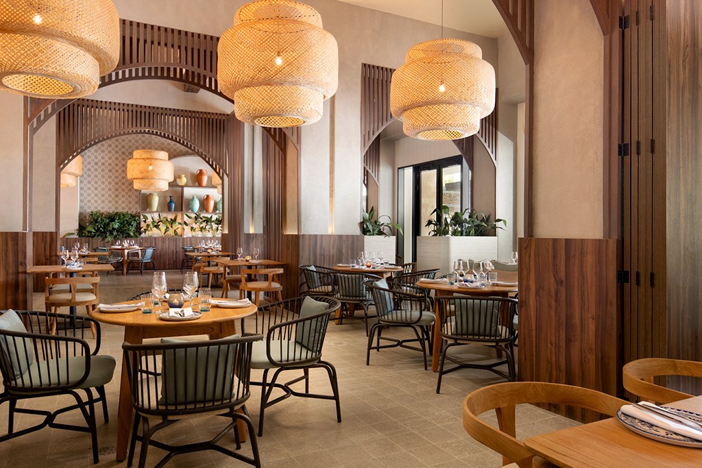 Situé face à la mer, le bar-grill de plage « Yuca » propose une cuisine au feu de bois inspirée des Caraïbes, à déguster lors d'un repas convivial en plein air.