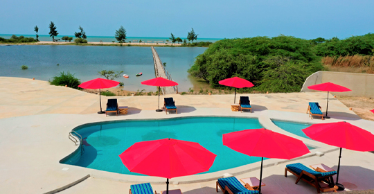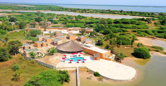 Au coeur du village pittoresque de Palmarin, niché dans la région exceptionnelle de Sine-Saloum au Sénégal, posé sur la lagune en face de l'Océan.