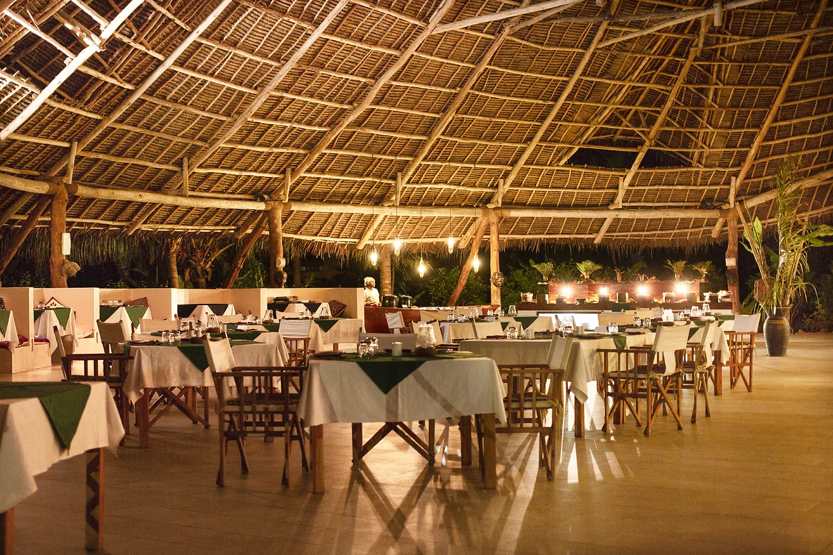 SaveurLe domaine compte 2 restaurants et 2 bars. Cœur vibrant du resort, le Kilimandjaro accueille ses hôtes sous une magnifique toiture tressée typiquement makuti. Spacieux et baigné de lumière, ce restaurant à l'atmosphère conviviale propose un buffet généreux où les saveurs du monde se rencontrent, avec aussi des corners de cuisine en direct où vous assistez à la conception des plats.