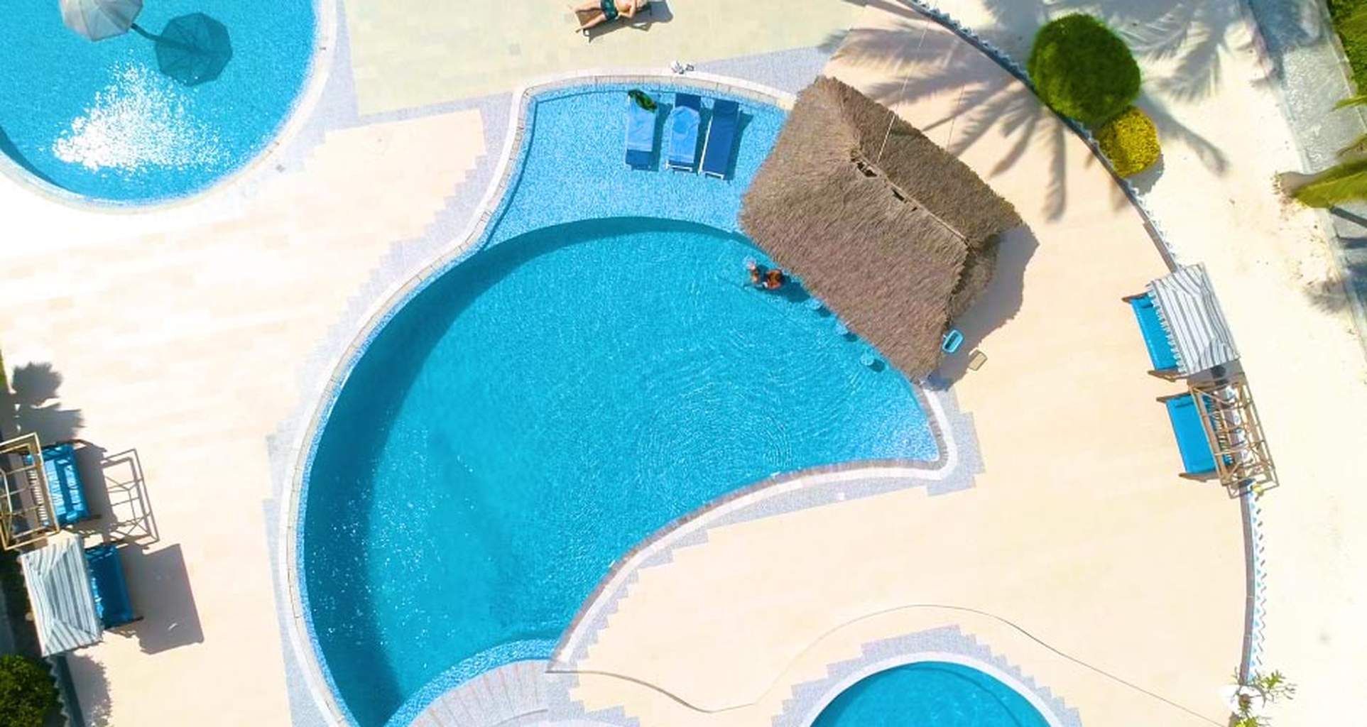 Vous poserez vos valises à l'hôtel Protels La Plage 4* (normes locales), situé sur la côte est de Zanzibar, à Bwejuu, un village réputé pour ses lagons turquoise et son atmosphère paisible. Installé au bord d'une superbe plage de sable blanc, l'hôtel offre un cadre où jardins tropicaux et océan se rejoignent. Avec ses trois piscines, ses espaces de détente et son accès direct à la mer, il invite à un séjour en toute sérénité, que l'on voyage en couple, en famille ou en quête de tranquillité. L'établissement compte 30 chambres mêlant charme africain et élégance balnéaire.