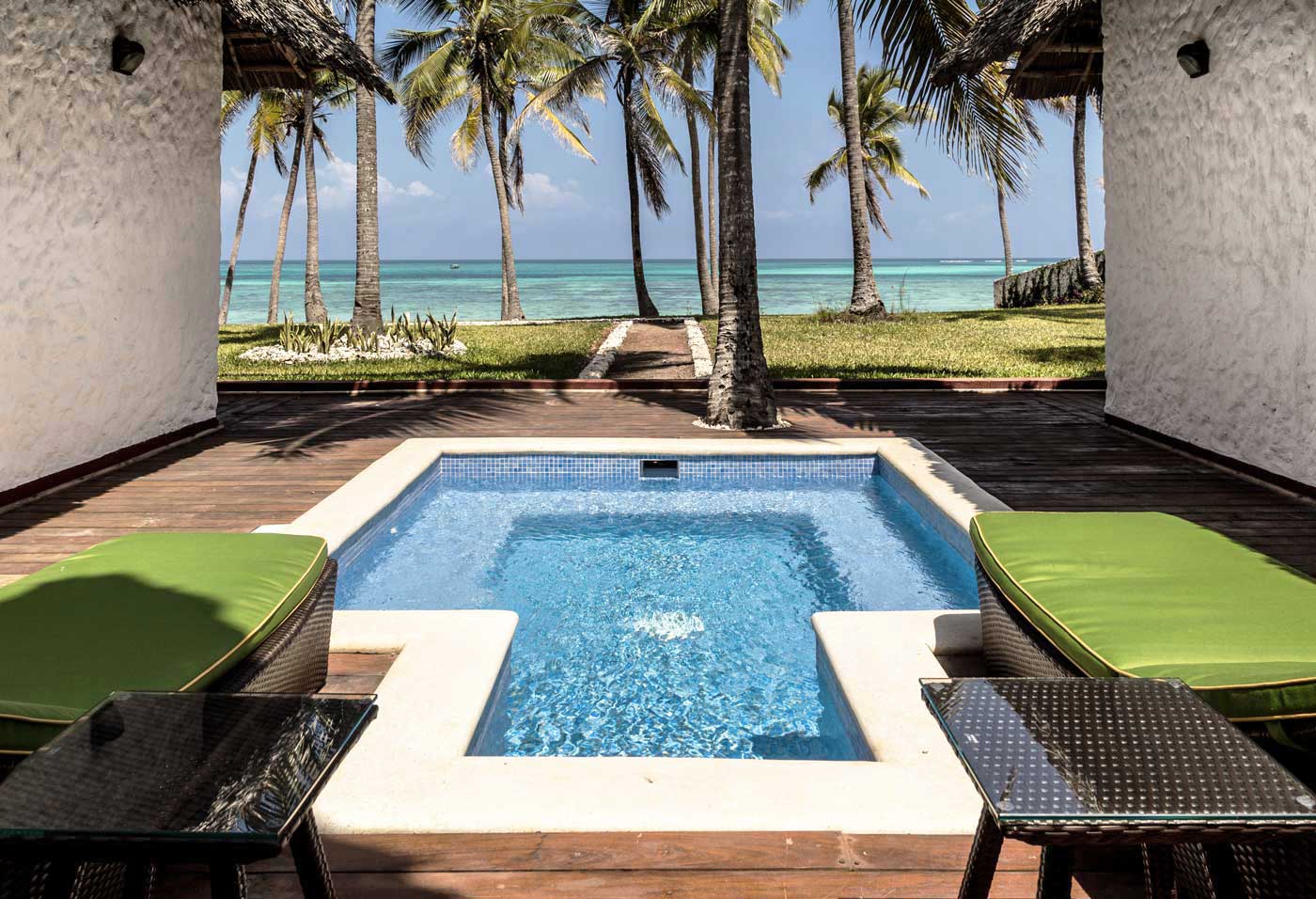 Sur la côte Est de l'île, à 65 km depuis l'aéroport de Stone Town, cet hôtel pionner et historique a évidemment choisi un des plus beaux endroits de l'île de Zanzibar, pour y poser délicatement ses 135 chambres, bâties dans le respect de l'architecture traditionnelle et au cœur d'un vaste domaine, d'une grande féérie naturelle, empli de bougainvilliers, frangipaniers et cocotiers. Une rangée de palmiers le sépare à peine d'une merveilleuse plage de sable blanc et d'un lagon aux variations de bleu turquoise étonnante.