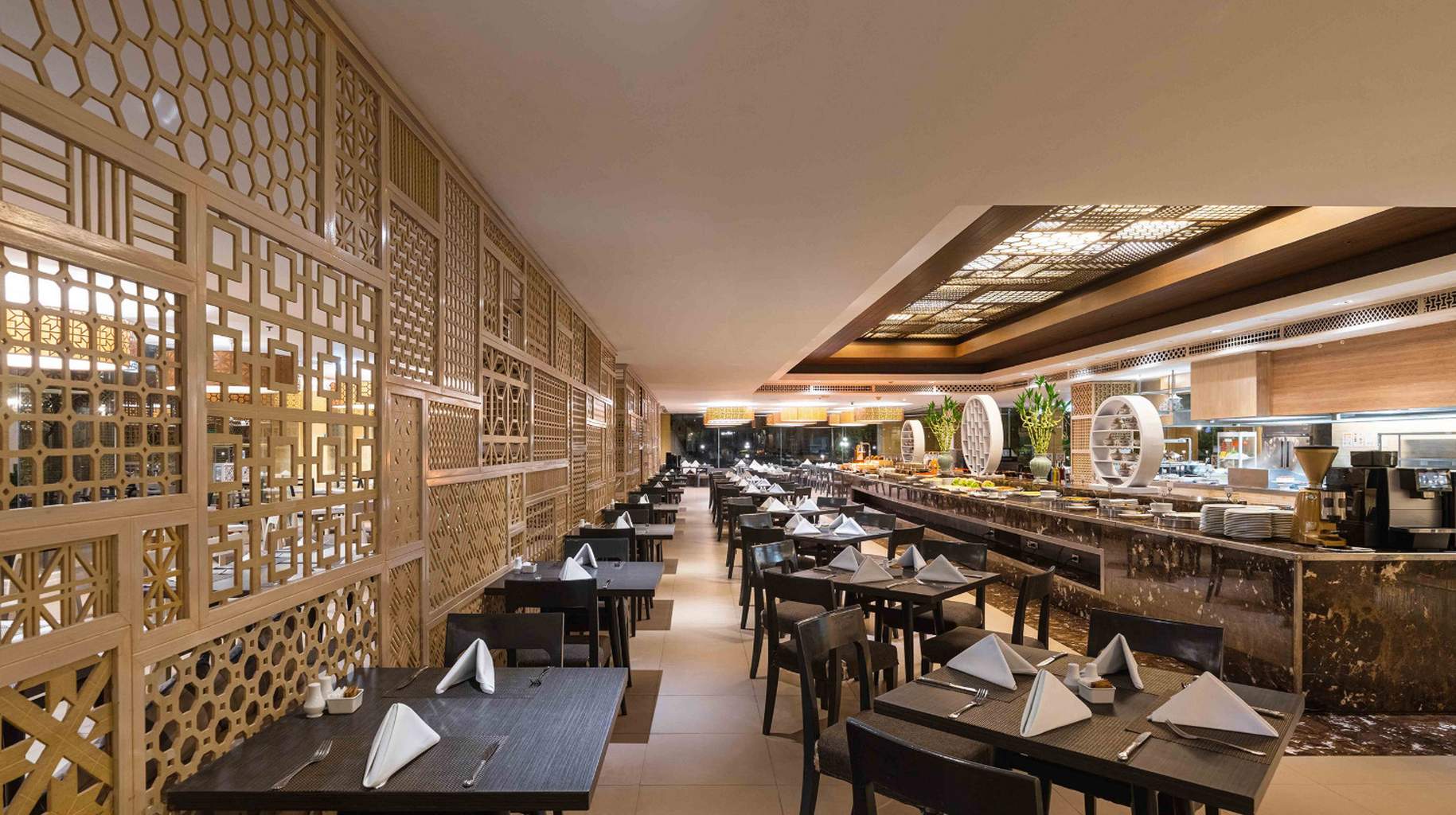 Le petit-déjeuner buffet est servi chaque matin. Les différents espaces de restauration et de bars permettent de profiter de moments conviviaux tout au long de la journée.