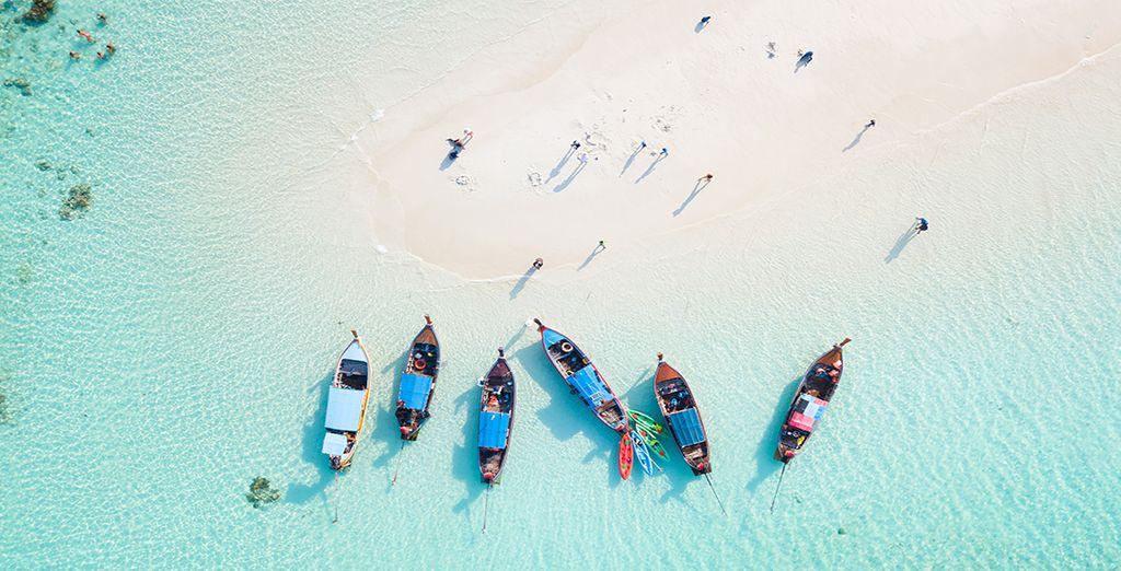 Cap sur la Thaïlande et la région de Phuket ! Cette région du Sud de la Thaïlande réputée pour ses magnifiques plages paradisiaques et ses innombrables temples et statues bouddhistes, vous accueille en toute sérénité. Avantagée par la nature et l'hospitalité de ses habitants, Phuket est aujourd'hui une des premières stations balnéaires tropicales au monde. Avec une silhouette de perle irrégulière longue de 21 kilomètres, elle est la plus grande île de Thaïlande. Reliée au continent par une route, la côte longée de plages de sable blanc et de petites baies paisibles, cette presqu'île est baignée des eaux bleues claires de la mer Andaman. Des plages bordées de palmiers, une mer parsemée d'îles, une délicieuse cuisine, de nombreuses activités sportives et de loisirs, sa vie nocturne et, naturellement, du soleil toute l'année, sont les ingrédients de la recette de vacances réussies et inoubliables.