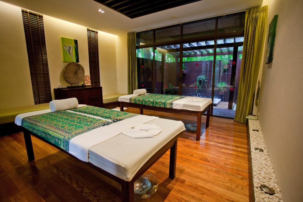 Bienvenue à l'Espace Spa et bien-être du Ramada Resort Khao Lak. Niché au cœur d'une végétation tropicale luxuriante, cet espace dédié à la détente invite à une immersion totale dans le bien-être. Chacune des salles de soins, individuelles ou en duo, dispose d'un hammam ou sauna à base de plantes, d'un bain à remous et d'une douche extérieure à effet pluie. Les thérapeutes certifiés y combinent les techniques traditionnelles thaïlandaises et les pratiques modernes pour offrir une gamme complète de soins : gommages détoxifiants, soins du visage, modelages personnalisés et rituels apaisants. Que vous choisissiez un soin express ou une parenthèse prolongée, chaque instant devient une invitation à ralentir, à respirer et à renouer avec l'harmonie.