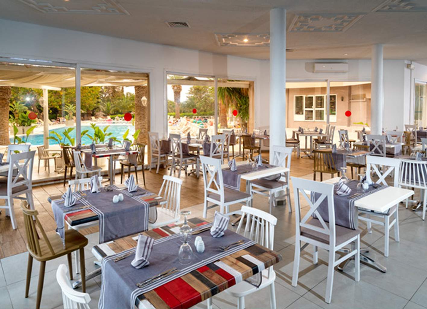Pour votre plus grand confort, vous séjournerez en formule Tout compris. Petit-déjeuner, déjeuner et dîner seront servis tous les jours au restaurant principal de l'hôtel. Ce dernier donne sur la place principale de l'hôtel et est accompagné d'une belle terrasse. Il propose de la cuisine locale et internationale afin de ravir tout le monde. Différentes soirées à thème sont proposées chaque semaine.