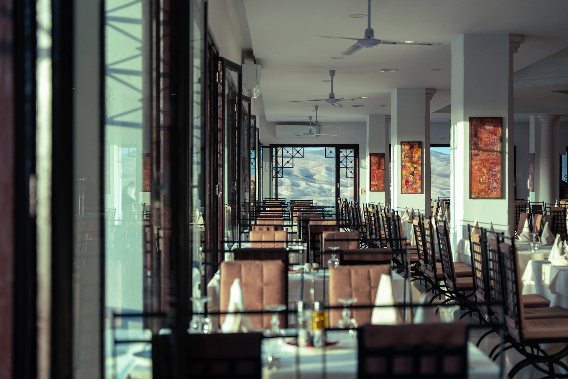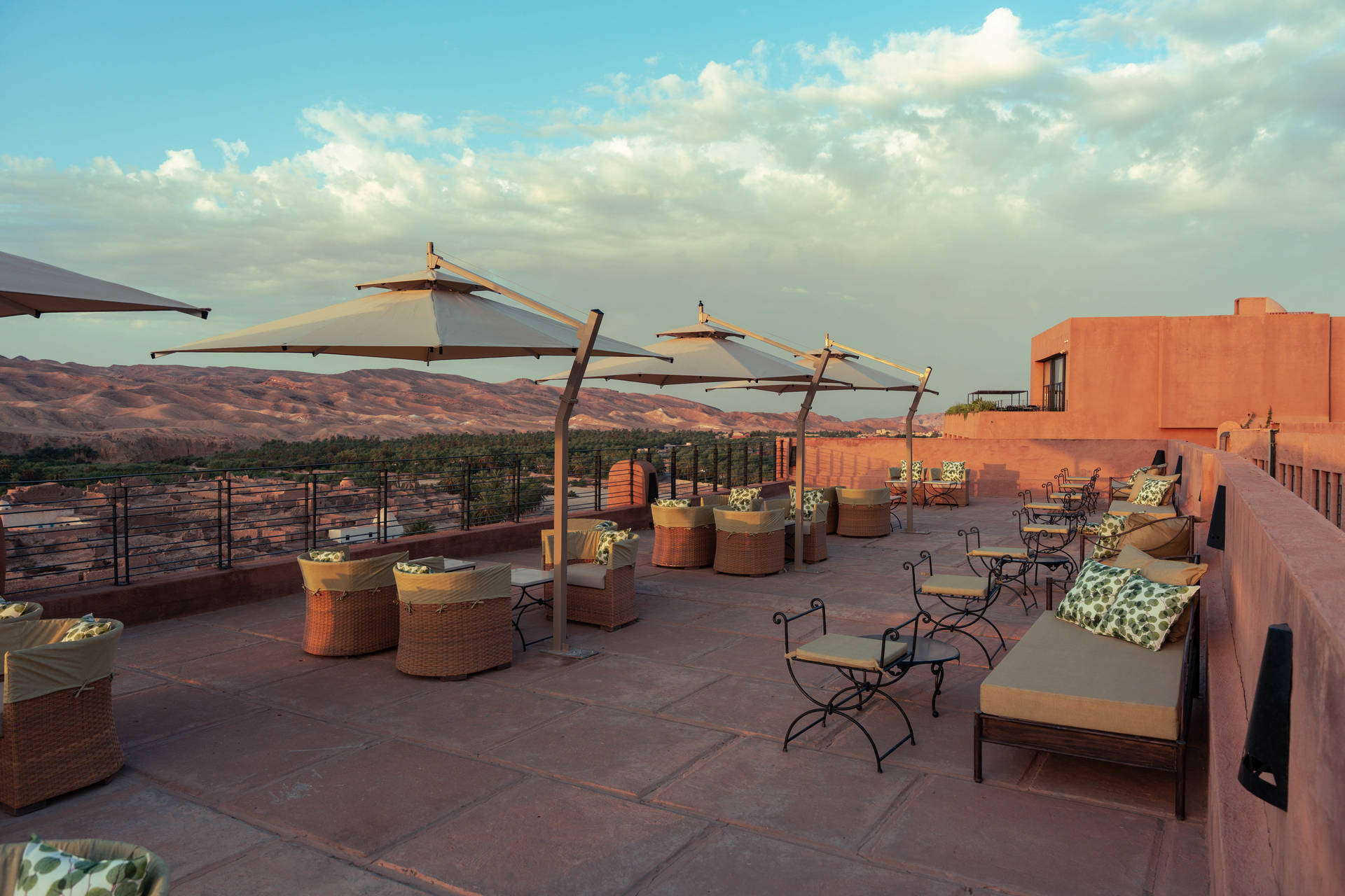 Pour une expérience gastronomique inoubliable, Les Terrasses de l'Atlas réunissent restaurant et bar panoramique. Installée sur une vaste terrasse à ciel ouvert, cette table d'exception offre une vue spectaculaire sur la palmeraie, les montagnes et les vestiges du vieux village de Tamerza, où chaque repas devient un moment d'exception.