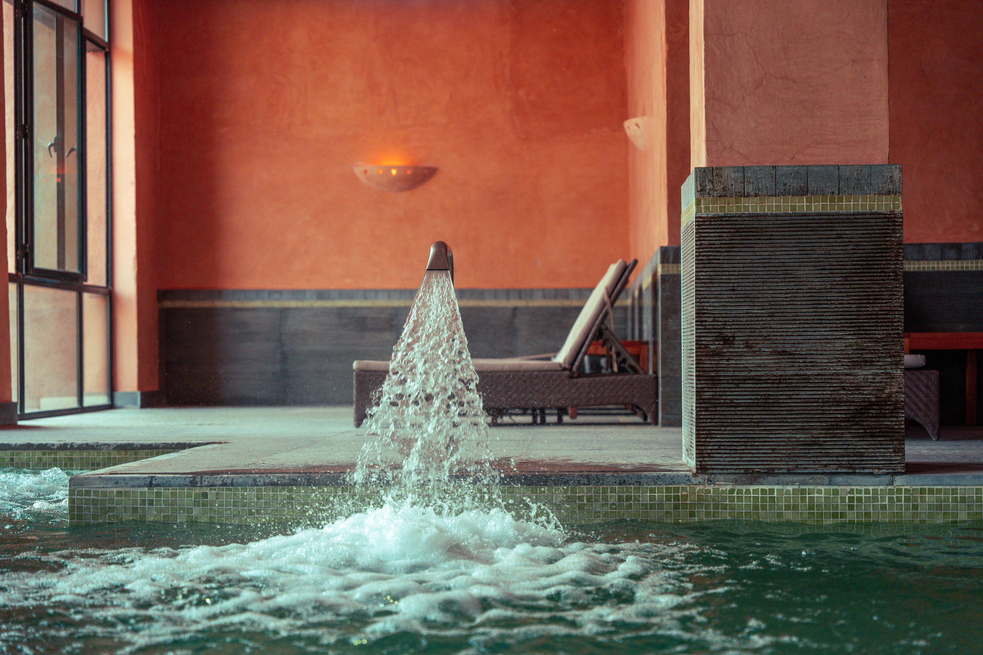 Le centre Spa de l'hôtel propose une expérience complète de bien-être, avec une piscine panoramique offrant une vue poétique sur la vallée et les ruines, pour des moments de détente et de sérénité inoubliables.