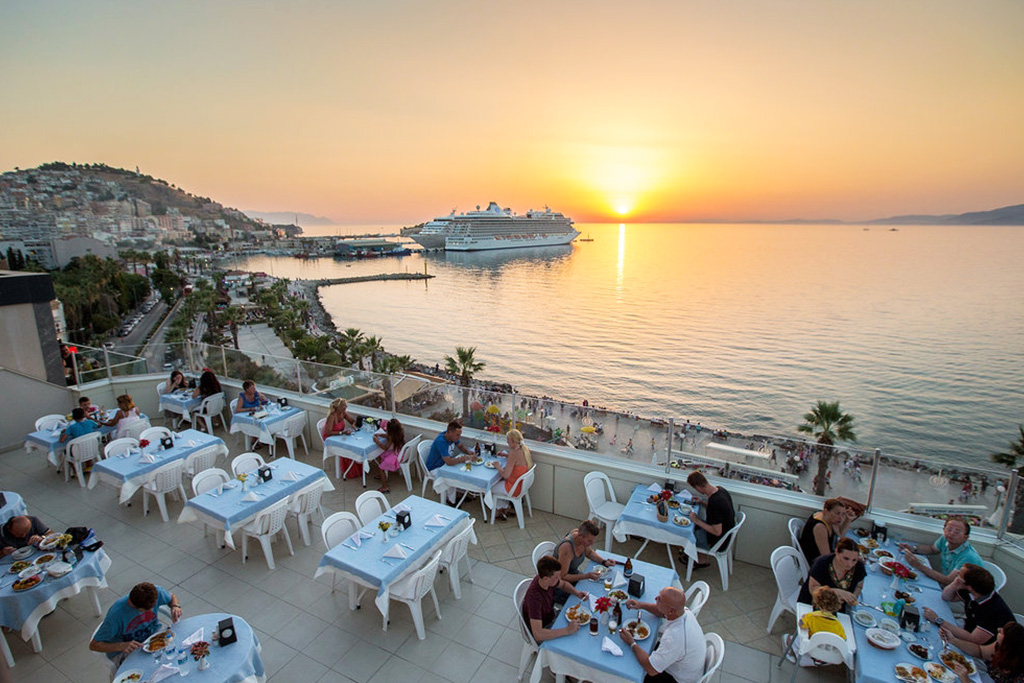 Bienvenue au Derici Hotel 4* ! Idéalement situé au cœur de Kuşadası, face à la mer Egée et à quelques pas du port et des commerces animés, cet hôtel urbain offre un point de départ privilégié pour découvrir la région d'Izmir et les trésors antiques d'Ephèse. Les chambres, confortables et lumineuses, sont conçues pour un séjour agréable. Vous profiterez d'une piscine sur le toit offrant un panorama dégagé sur la baie, d'un restaurant proposant une cuisine locale et internationale ainsi que d'un espace Spa et bien-être pour vous détendre après vos excursions. Grâce à sa situation centrale et à son ambiance conviviale, cet hôtel constitue une adresse idéale pour allier découvertes culturelles et plaisirs balnéaires sur la côte égéenne.