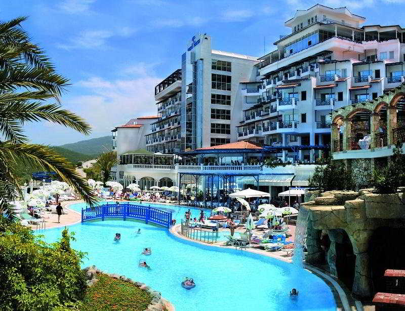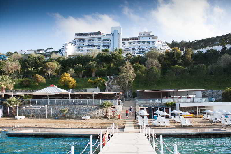 Ce complexe de vacances impressionnant est perché en haut d'une colline, offrant une vue superbe sur la mer Égée et la baie de Pamucak. Il y a un arrêt de bus juste en face de l'hôtel, offrant un accès facile à la station balnéaire populaire de Kusadasi, à huit kilomètres. Les passionnés d'histoire pourront également visiter la fabuleuse ville romaine d'Éphèse à 15 minutes de l'hôtel. Avec un restaurant et un bar de plage, l'hôtel se compose de bâtiments de 2 et 3 étages situés autour d'un jardin central ainsi que de cinq restaurants servant des buffets riches et variés ainsi que des repas à la carte. Les chambres sont équipées de climatisation, de télévision par satellite et d'un balcon ou d'une terrasse, et certaines chambres sont de style duplex pour le confort de ceux qui voyagent ensemble. Les chambres Club de l'établissement sont de style chalet et sont situées dans l'enceinte, à l'extérieur de l'hôtel principal. Les clients peuvent profiter d'un match de tennis ou se détendre avec un massage ou un moment au sauna, et les enfants se réjouiront du club pour enfants, de l'aire de jeux et de la piscine extérieure avec toboggan aquatique, le tout pendant des vacances fantastiques et ensoleillées en Turquie.