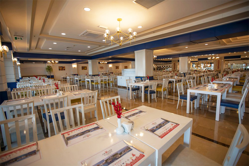 Pour chaque repas, laissez-vous tenter par les buffets généreux du restaurant principal, où spécialités turques et saveurs internationales s'invitent à votre table dans un cadre lumineux et convivial.