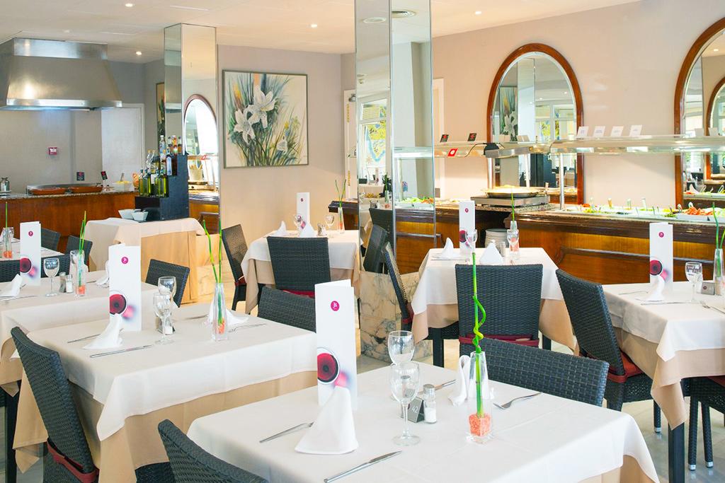Chaque matin, le restaurant buffet propose un petit-déjeuner complet et varié et pour le dîner, vous pourrez choisir parmi un magnifique buffet comprenant des spécialités majorquines et méditerranéennes chaudes ou froides ainsi qu'une un espace de show cooking. Laissez-vous surprendre par l'équipe de professionnels dont le but est de répondre à toutes vos attentes.
